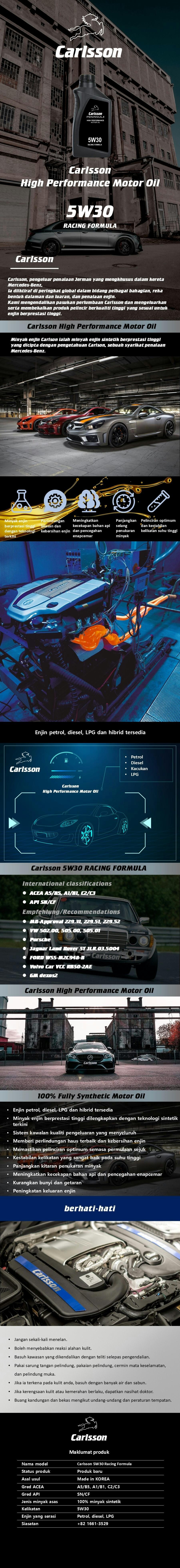 Formula Perlumbaan 5W30 Minyak Enjin Carlsson (1Kotak -12 Liter)